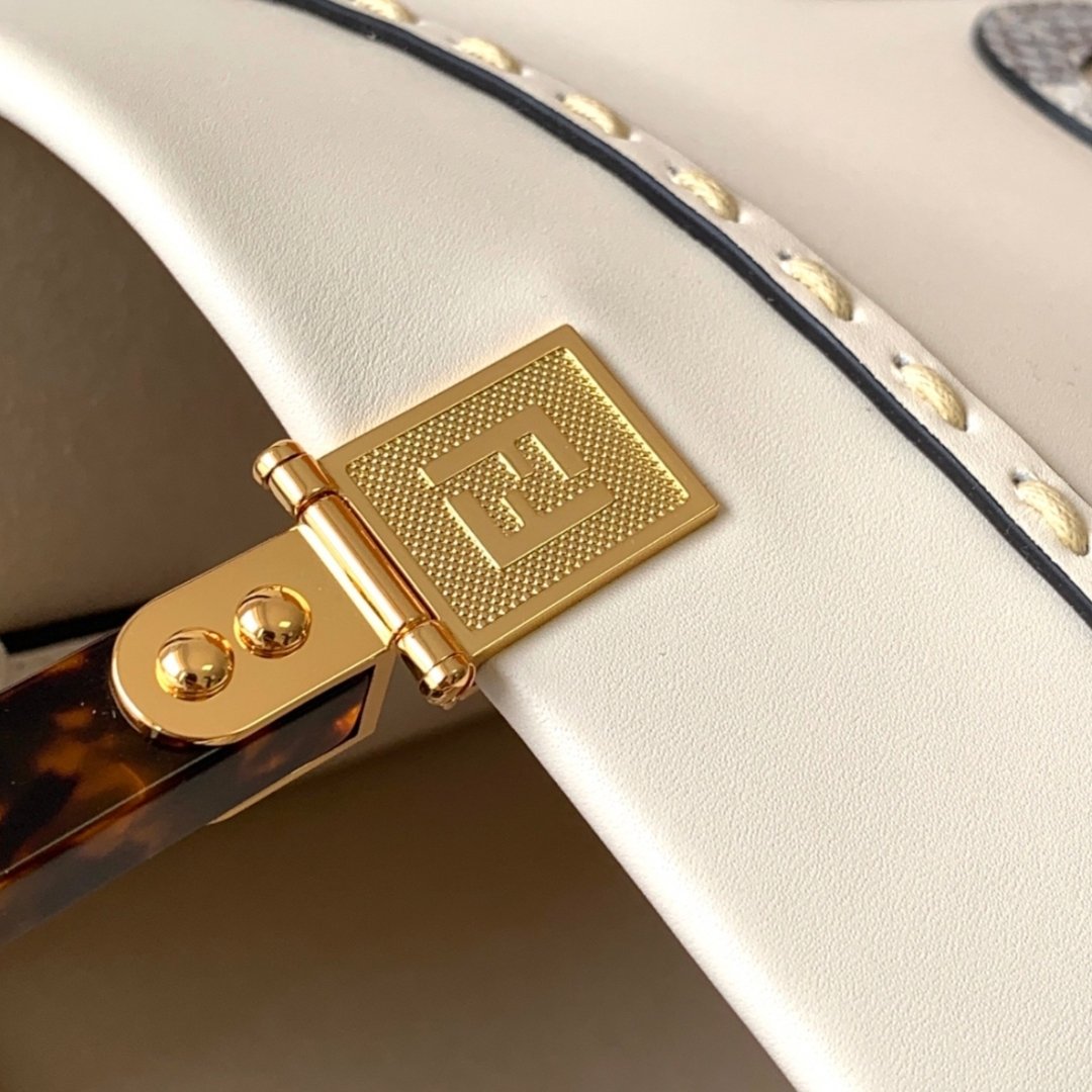 Sunshine medium-sized shopping bag made of genuine leather with "FENDI ROMA" hot stamp and solid plexiglass handles.